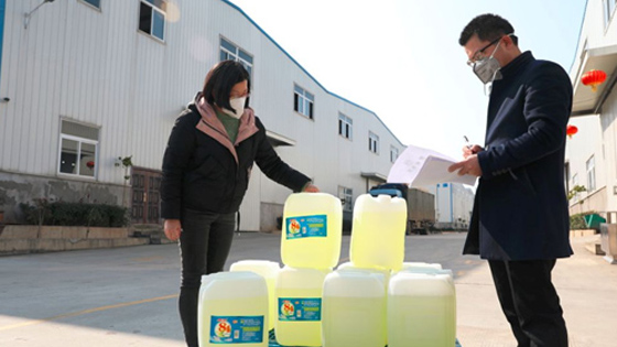 2020年1月31日下午,在長(zhǎng)沙經(jīng)開(kāi)區(qū)麗奧科技產(chǎn)業(yè)園門(mén)口,湖南麗臣實(shí)業(yè)股份有限公司副總經(jīng)理張穎民正在分發(fā)84消毒液。彼時(shí)...