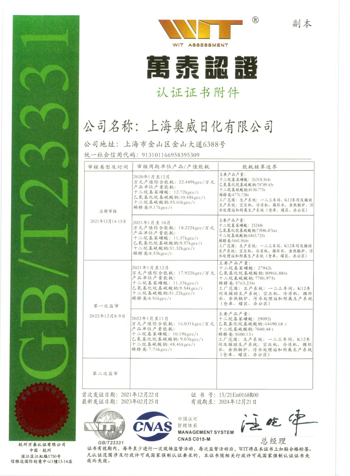 上海奧威能源管理體系認(rèn)證證書