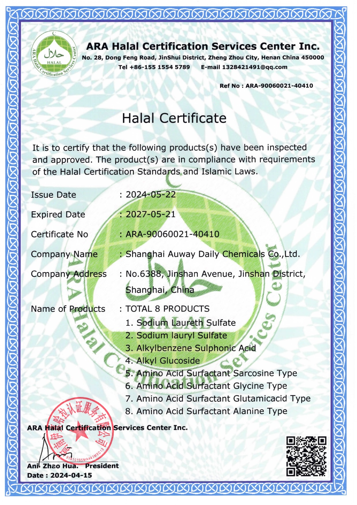 上海奧威HALAL認(rèn)證證書